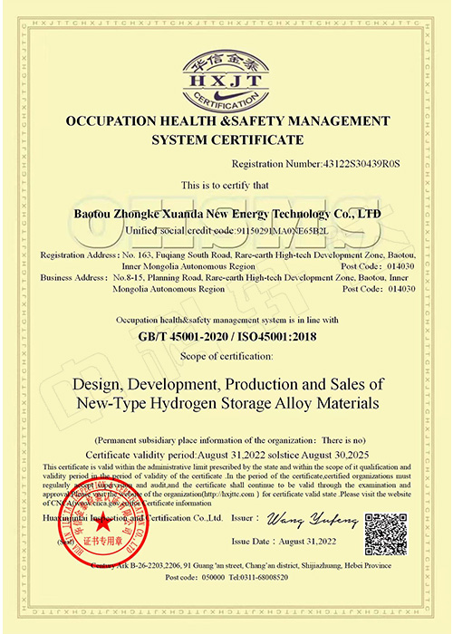 職業(yè)健康安全管理體系認(rèn)證證書-ISO45001