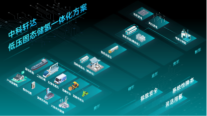 氫氣具有分子小、極易逃逸和難壓縮等特性,如何高安全、高密度、低成本儲(chǔ)運(yùn)氫氣,目前仍是制約氫能產(chǎn)業(yè)發(fā)展的痛點(diǎn),儲(chǔ)氫技術(shù)是氫能應(yīng)用的關(guān)鍵核心技術(shù)之一。中科軒達(dá)結(jié)合公司在高容量固態(tài)儲(chǔ)氫材料和儲(chǔ)氫裝備系統(tǒng)的研發(fā)、生產(chǎn)和應(yīng)用,針對(duì)可再生光伏發(fā)電和風(fēng)力發(fā)電生產(chǎn)的綠氫,研究開發(fā)了一種固態(tài)儲(chǔ)氫“充、運(yùn)、儲(chǔ)、用”低壓一體化技術(shù)方案,該方案是一種氫氣儲(chǔ)存、運(yùn)輸及應(yīng)用的綜合解決方案。