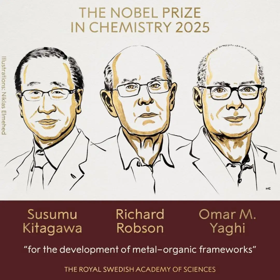 10月8日, 2025年諾貝爾化學(xué)獎(jiǎng)授予北川進(jìn)、理查德·羅布森和奧馬爾·M·亞吉,以表彰其“在金屬有機(jī)骨架領(lǐng)域的貢獻(xiàn)”。金屬-有機(jī)框架(Metal-Organic Frameworks),簡(jiǎn)稱MOF,是一種由金屬離子或簇與有機(jī)配體相互連接而形成的一類具有周期性網(wǎng)絡(luò)結(jié)構(gòu)的晶態(tài)多孔材料。